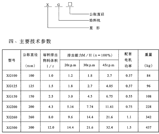 三、XG系列星形給料機(jī)型號(hào)及參數(shù)