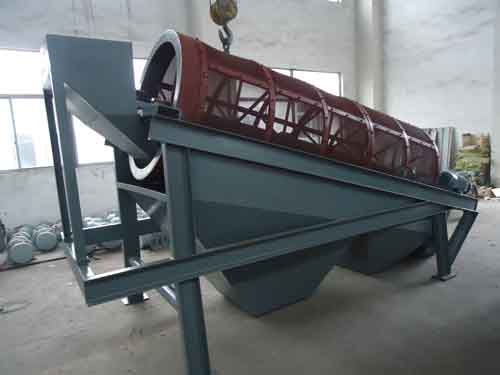 滾筒篩主要有電機、減速機、滾筒裝置、機架、密封蓋、進出料口組成。滾筒裝置傾斜安裝于機架上。 電動機經減速機與滾筒裝置通過聯軸器連接在一起,驅動滾筒裝置繞其軸線轉動。當物料進入滾筒裝置后,由于滾筒裝置的傾斜與轉動,使篩面上的物料翻轉與滾動,使合格物料(篩下產品)經滾筒后端底部的出料口排出,不合格的物料(篩上產品)經滾筒尾部的排料口排出。由于物料在滾筒內的翻轉、滾動,使卡在篩孔中的物料可被彈出,防止篩孔堵塞。滾筒篩砂機、滾筒篩分機與滾筒篩的原理構造幾乎相同,是人們對它的認識和叫法上存在差異。