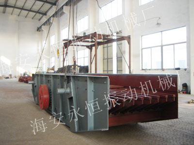 本給料機(jī)的運(yùn)動(dòng)由兩臺(tái)同規(guī)格,作相對(duì)旋轉(zhuǎn)的振動(dòng)電機(jī)產(chǎn)生,固定在給料機(jī)箔體兩側(cè)的振 動(dòng)電機(jī)是雙出釉,軸端裝有可調(diào)夾角的偏心塊。