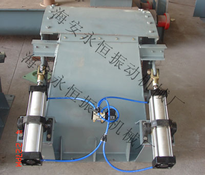 該卸料器通過水銀開關(guān)或行程開關(guān)實現(xiàn)氣路的遺、斷;通過限位擋塊實現(xiàn)弧門的開啟、閉合位置;通過調(diào)節(jié)定位銷軸在銷軸板上的位置實現(xiàn)弧門開啟的大小,從而實現(xiàn)卸料量的調(diào)節(jié)。